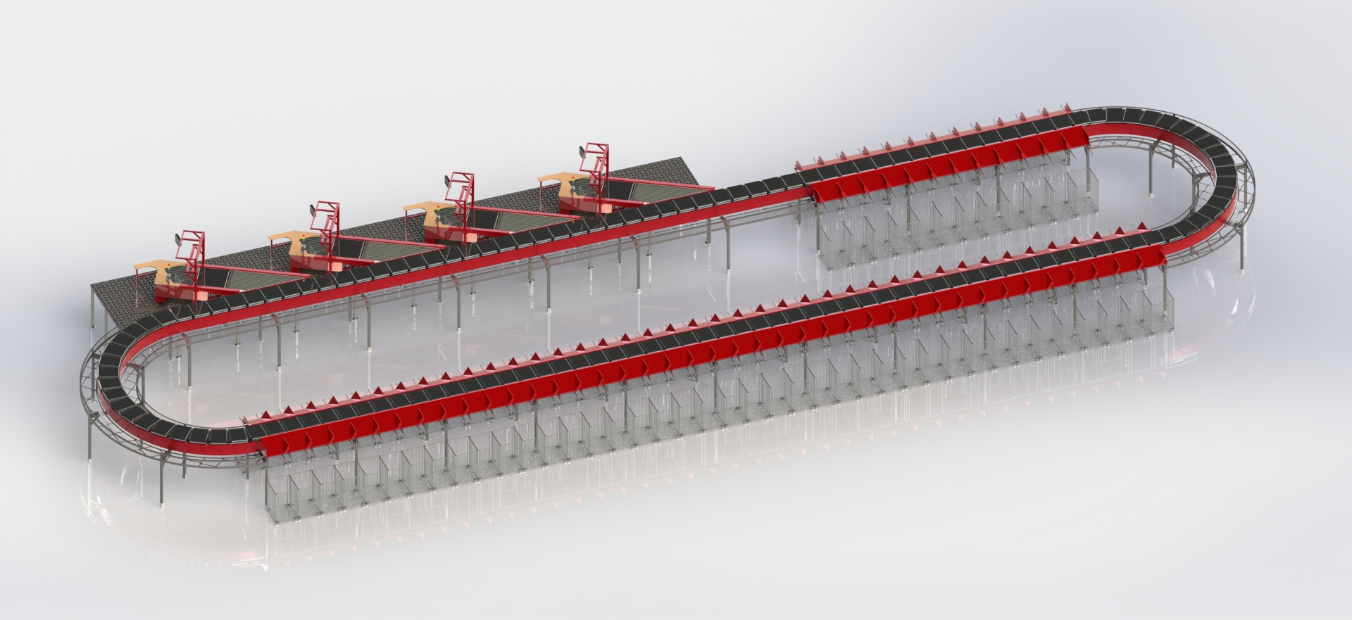 Двухслойный поперечно-ленточный сортировщик: Уникальная конструкция, которая эффективно удваивает производительность сортировки без увеличения занимаемой площади.